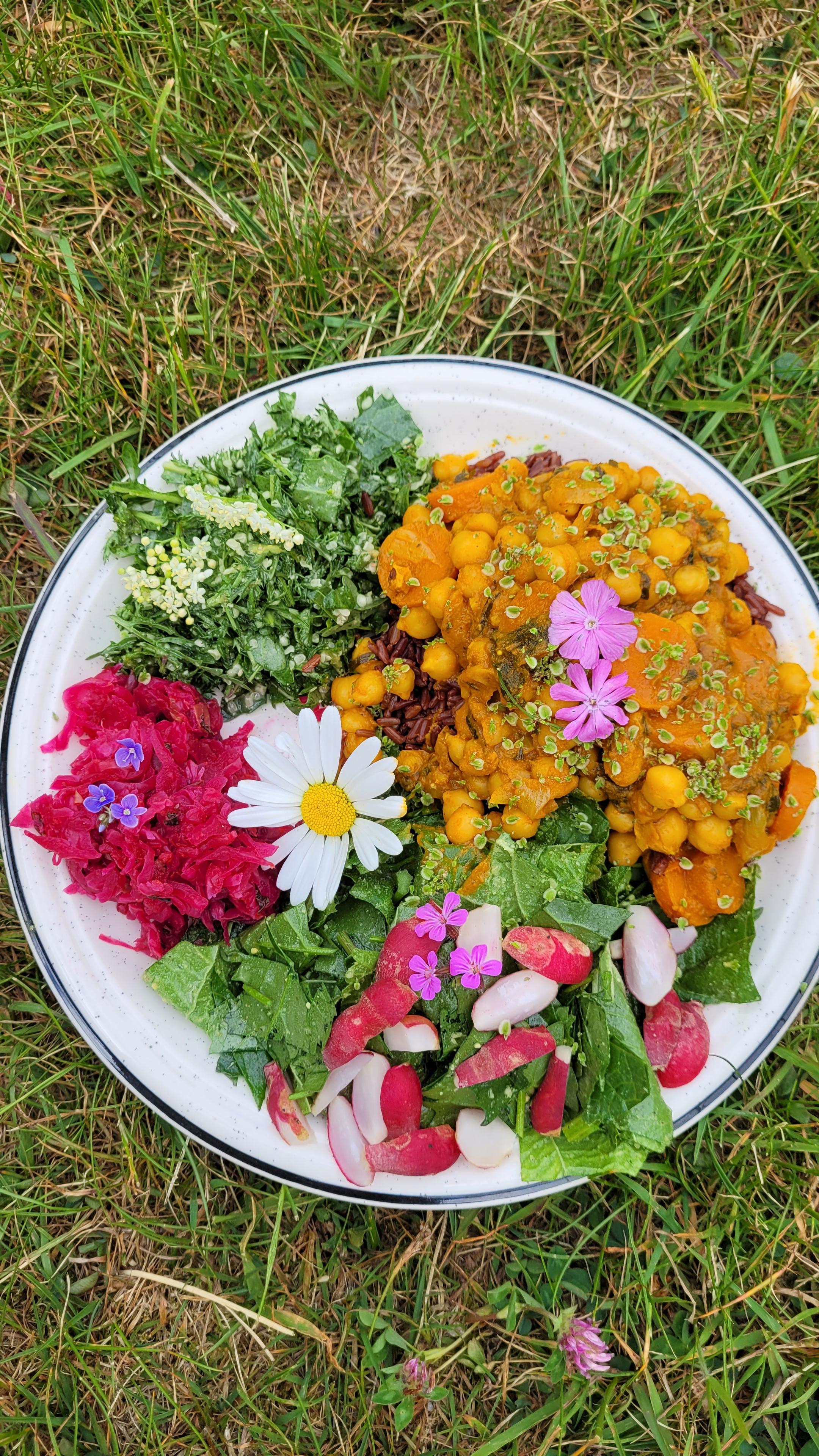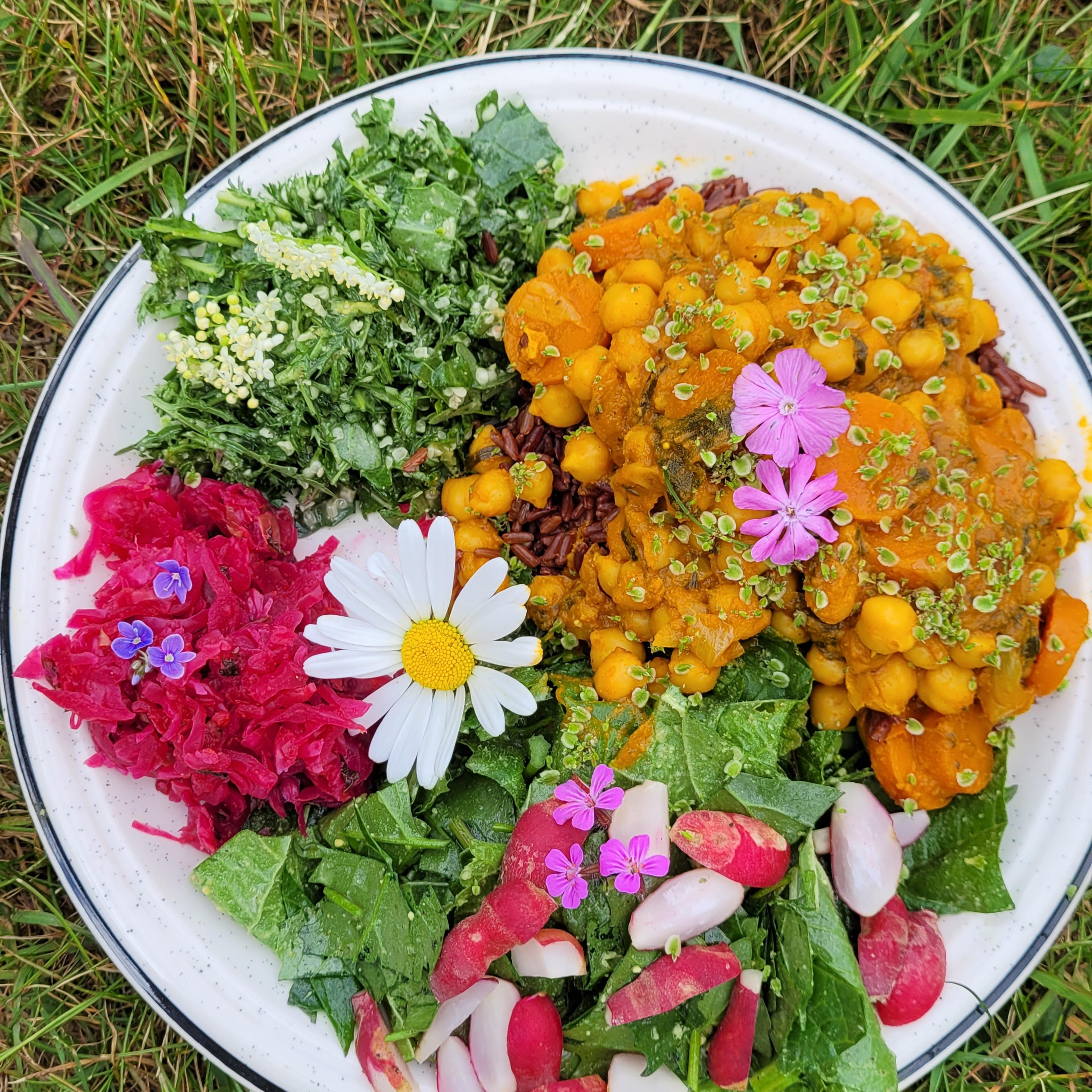 Wilde Variationen: VitaSchokoMousse, Porridge, Dal, Salate, mit vielen Blüten und Gartenschätzen