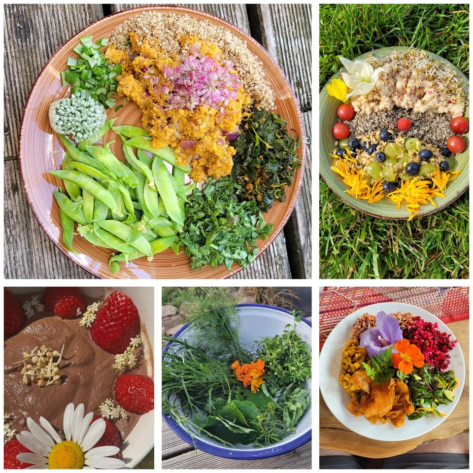 - vitalisierende, nährstoffreiche Kost mit Wildkräutern, Sprossen und Fermentation sowie gekochten Komponenten (alles 100% bio!)